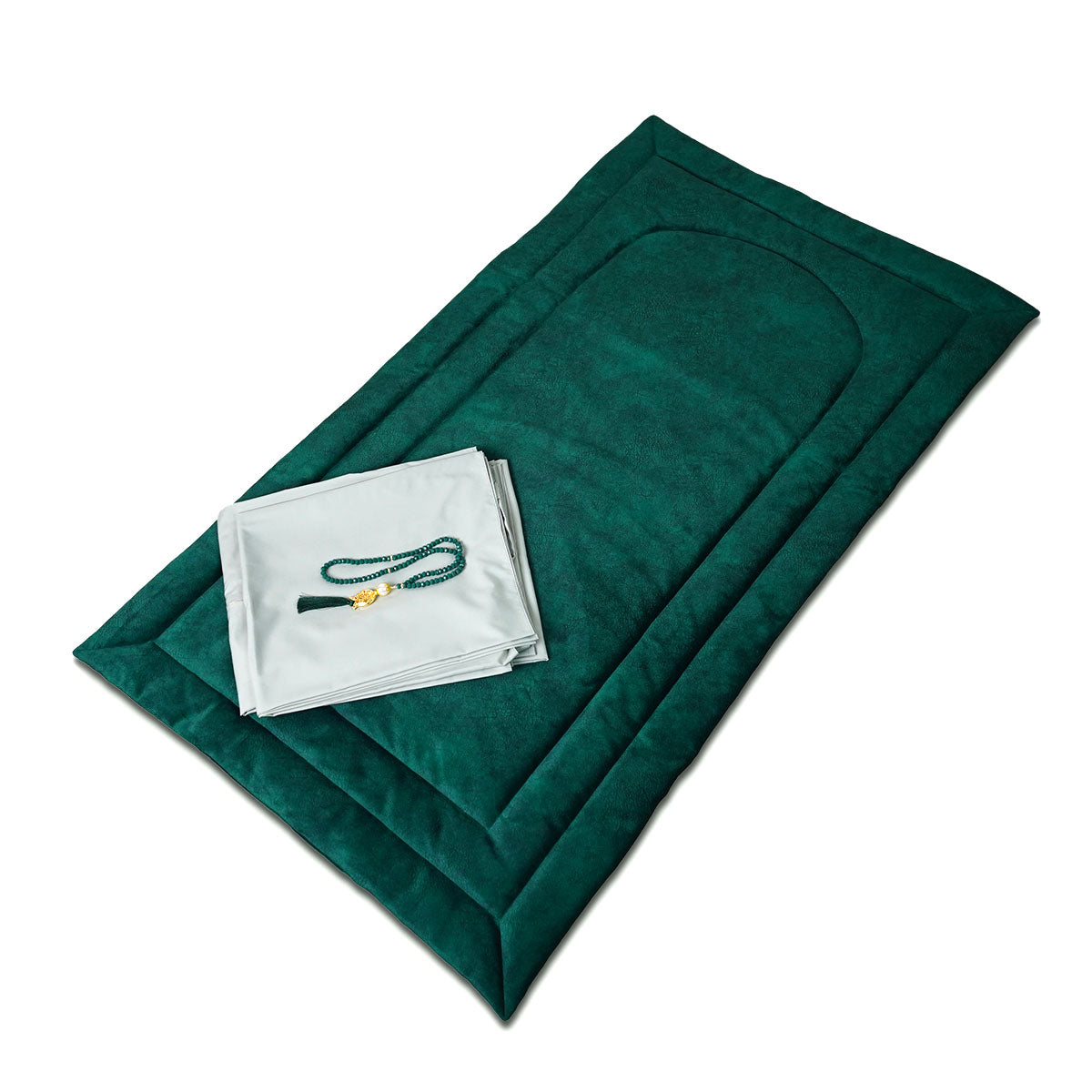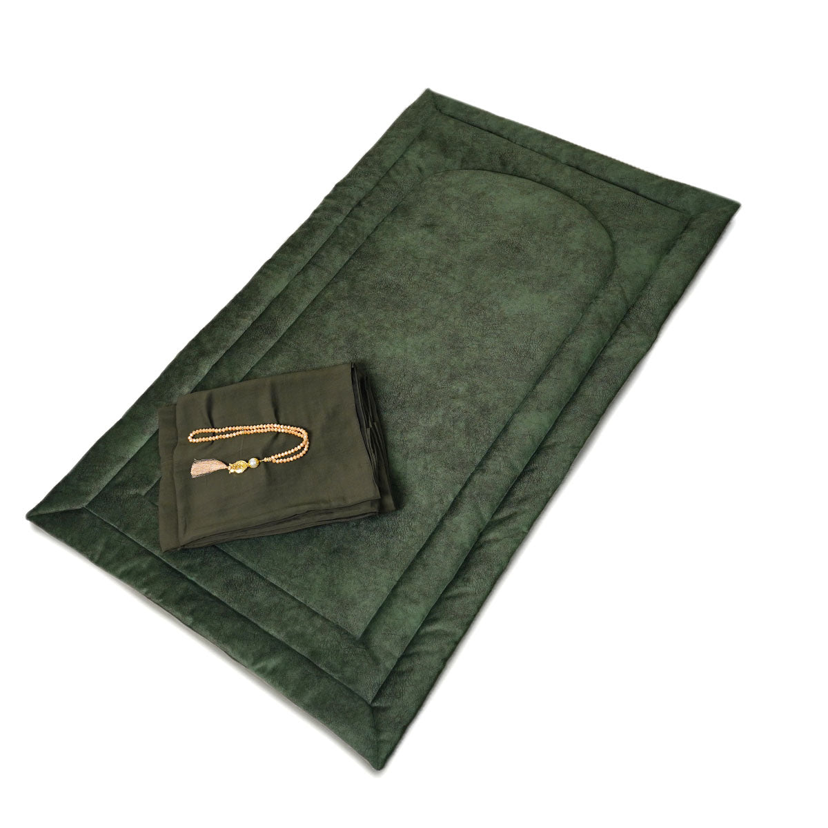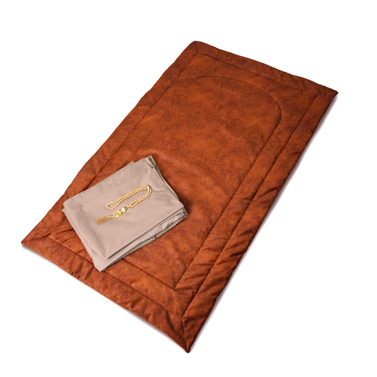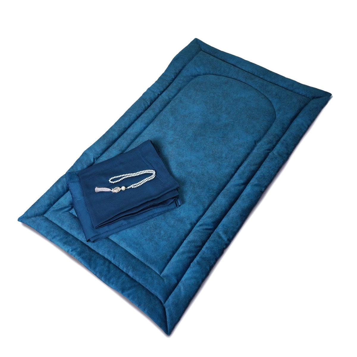 Plain prayer carpet handmade from Soft Chamois fabric . Unique, simple and Stuffed with sponge layer for comfort with matching prayer wear and prayer bead gift.