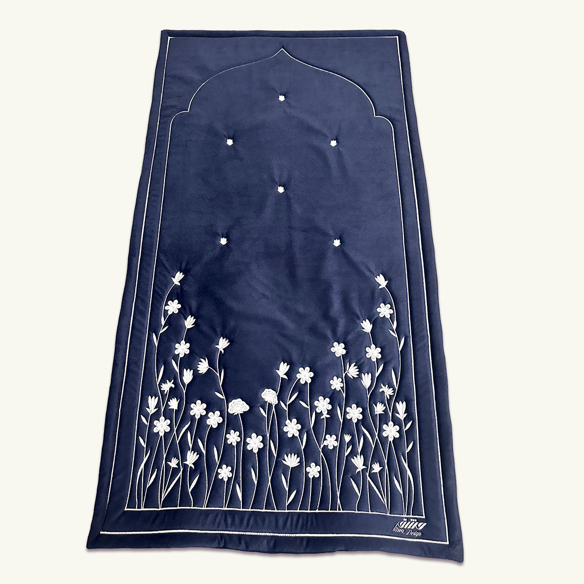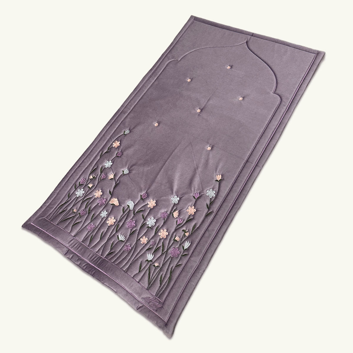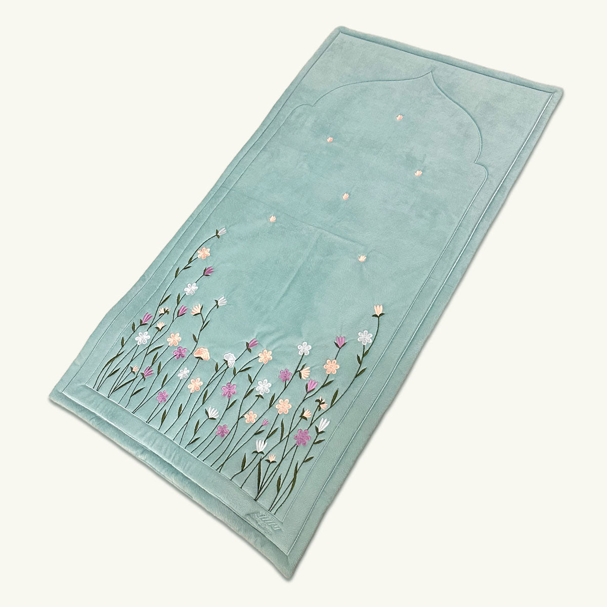 Luxurious Prayer mat made from velvet with embroidery design, stuffed for comfort with sponge inside.